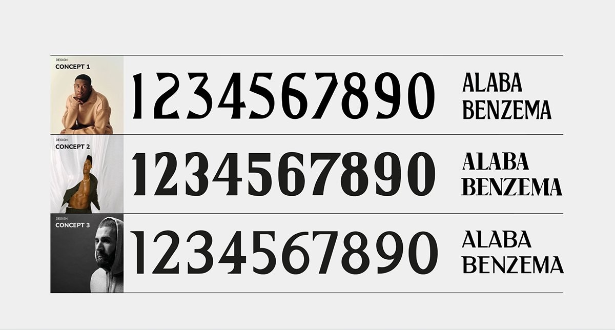 The Conde Font was inspired by the refined typography of high-end fashion magazines. Featuring elegant serifs and balanced proportions, it was designed to elevate the jersey into the realm of luxury design.